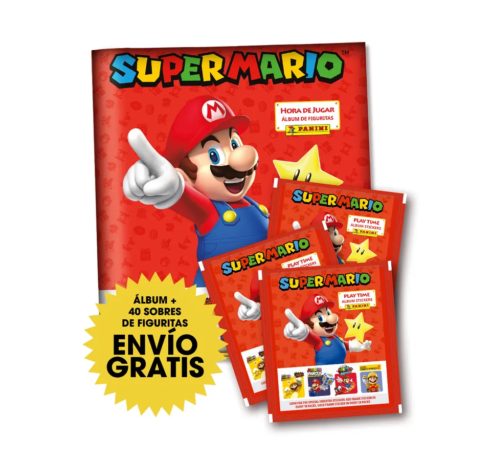 ¡Coleccioná las figuritas de Super Mario! Incluye 1 álbum oficial y 40 sobres de figuritas coleccionables.